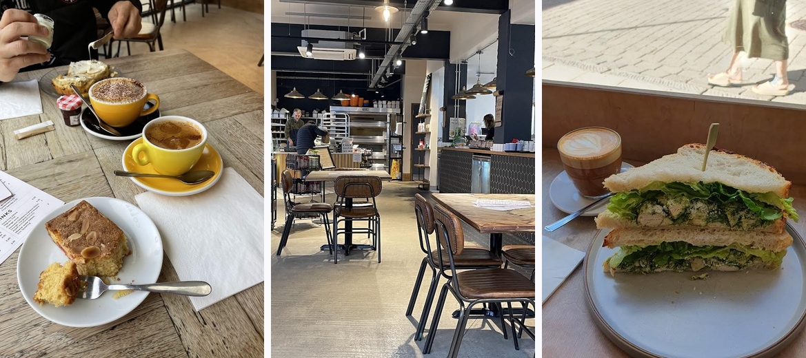 Just minutes after opening, lovely quiet Saturday morning, we stop for delicious coffee and cakes. It is the best place to buy real sourdough bread and cakes to enjoy at home. Their bakewell tart and scones are the best I ever had. Every thing is made there, our scones were still warm. Service is excellent, poeple are smiling and clearly enjoying working there. I love calm and serene atmosphere. Next time we will try some of the brunch dishes.